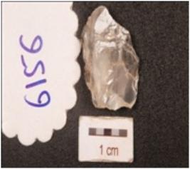 | Description / विवरण | Flake made on quartz with flake scars on the surface, irregular surface. |