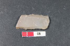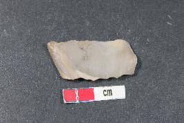 | Description / विवरण | Chert blade with bulb of percussion on the ventral side . Two dorsal ridges and retouching are present. |