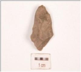 | Description / विवरण | Flake made on chert with flake scars on the surface and sharp and wavy round the edges. |