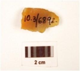 | Description / विवरण | A single ridged chalcedony blade made on flake, retouching along the edges, prepared platform, prominent bulb at ventral side, smooth surface. |