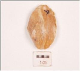 | Description / विवरण | Chert flake, prepared platfrom, diffused bulb flake scars on both sides and triangular corss section. |