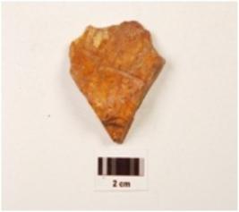 | Description / विवरण | A scraper made on chert, ridge and flake scars on surface, irregular cutting edges. |