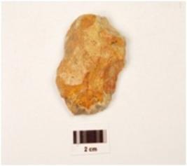 | Description / विवरण | A scraper made on chert, prepared platform on proximal end, flake scars on dorsal surface, irregular cutting edges. |