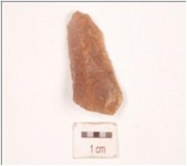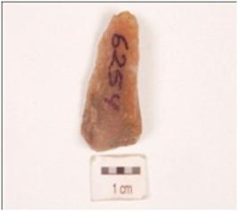 | Description / विवरण | Chert blade, prepared platform, bulb absent and flake scars on dorsal side with triangular cross section. |