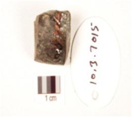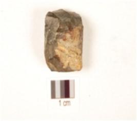 | Description / विवरण | A core, made on chert four blade scars on dorsal side and smooth surface, partly chipped off on surface. |