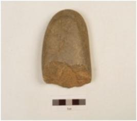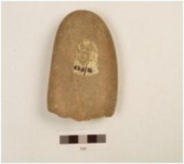 | Description / विवरण | A chopper made on quartzite pebble with oval section, smooth surface, cortex is visible. |