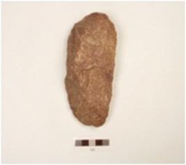 | Description / विवरण | A quartzite handaxe made on flake, flake scars on the surface, bi convex cross section, wavy cutting edges. |