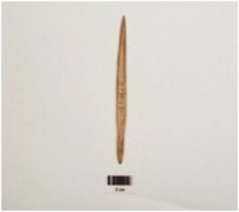 | Description / विवरण | A bone point, sharp pointed ends on both side, brown in colour and well polished surface. |