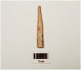 | Description / विवरण | Fragment of a bone point, one end is pointed and tip is slighty chipped off, other end is partly borken and well polished surface. |