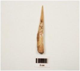 | Description / विवरण | A bone point, one end sharp point, other end flat and broad, well polished surface. |
