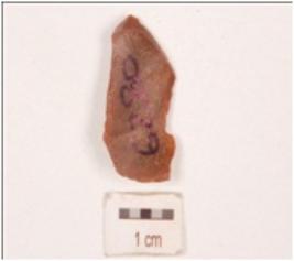 | Description / विवरण | Chert flake, prepared platform, diffused bulb flake scars on dorsal side and user marks on cutting edge. |