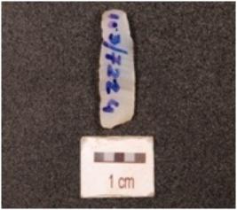 | Description / विवरण | A parallel sided blade made on end struck chalcedony flake, prepared platfrom at proximal end, diffused bulb to ventral side, blade scars on dorsal side and partly broken distal end. |