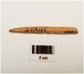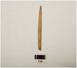 | Description / विवरण | A bone point, one end is sharp pointed and other end is partly broken, well polished surface. |