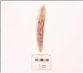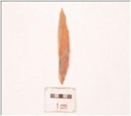 | Description / विवरण | Chert blade, pointed end, flake scars on one side and triangular cross section. |