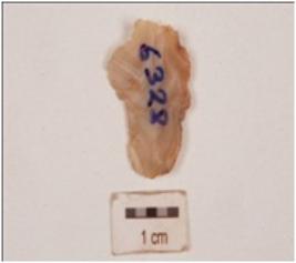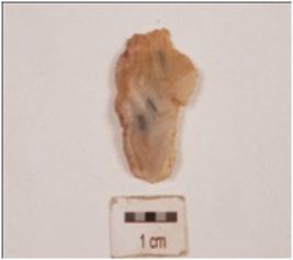 | Description / विवरण | Chalcedony end struck flake with prepared platform, prominent bulb on ventral side and cortex partly intact on one side. |