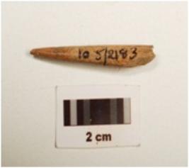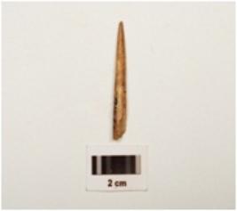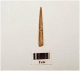 | Description / विवरण | Fragment of a bone with circular section one end is sharp pointed and other end is partly broken, well polished surface. |