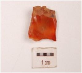 | Description / विवरण | A end scraper made on end struck carnelian flake, cortex on one end, negative bulb on ventral side and concave convex cutting edge with retouches. |