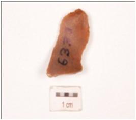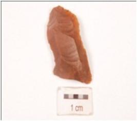 | Description / विवरण | Chert end struck flake, prepared platform, prominent bulb on ventral side and trapezoidal in cross section. |