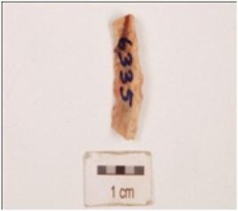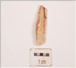 | Description / विवरण | Chert blade, triangular in cross section, broken from both ends and use-wear marks along the cutting edges. |