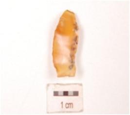 | Description / विवरण | A blade made on end struck chalcedony flake, one lateral side blunted and other is sharp with retouches. |