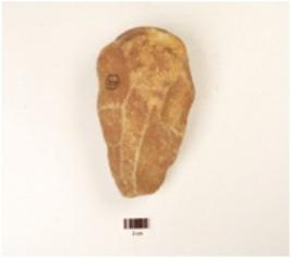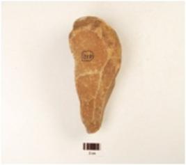 | Description / विवरण | A quartzite hand axe made on pebble, flake scars on the surface, enterior end intact, cortex on the posterior end, bi convex-cross section, wavy cutting edges. |