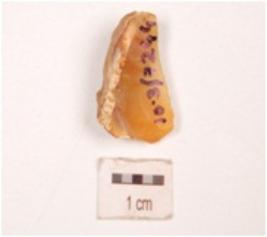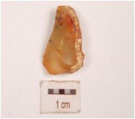 | Description / विवरण | A side scraper made on chalcedony flake, cortex on side and convex cutting edge with use-wear marks. |