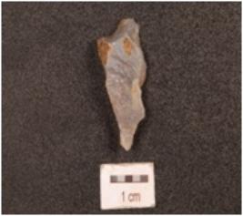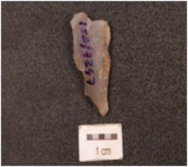 | Description / विवरण | A flake on chalcedony blade scars on surface and cortex on one side. |