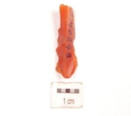 | Description / विवरण | A core on carnelian with four blade scars on surface. |