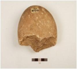 | Description / विवरण | A chopping tool made on quartzite pebble butt end, smooth surface, cortex is visible, biconvex section. |