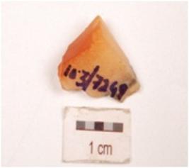| Description / विवरण | A side scraper made on carnelian flake and wavy cutting edge with use-wear marks. |