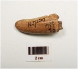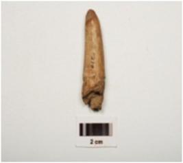 | Description / विवरण | Fragment of a chisel on horn with modifide and well polished surface, chipped off near pointed end to give a chisel like edge, thicker and broken other end. |