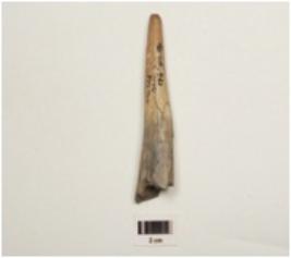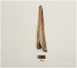 | Description / विवरण | A horn chisel with polished surface, slightly broken at both pointed ends and triangular cross section. |