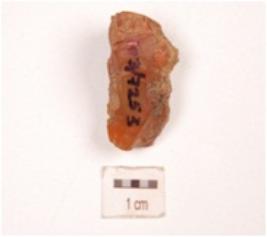 | Description / विवरण | A blade on core on carnelian with cortex and six blade scars. |