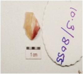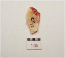| Description / विवरण | A utilized flake made on end struck chert, smooth surface yellow and red colour. |