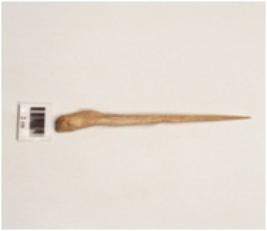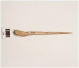 | Description / विवरण | A bone point with flat surface and tapered on one end, one end pointed other end thick, well polished, a groove on other side, brownish colour. |