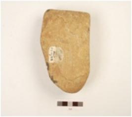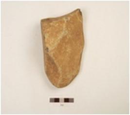 | Description / विवरण | Chopper made on quartzite pebble, one side flake, blunted cutting edge, butt end on posterior end, cutting edge on anterior end, trangular section. |