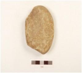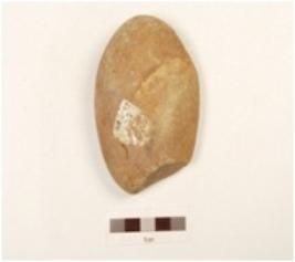 | Description / विवरण | Chopper made on quartzite pebble, one side flake scars, plano convex section. |