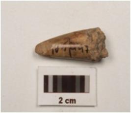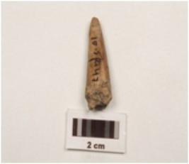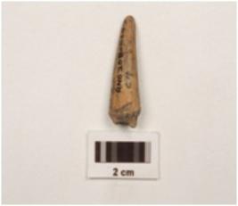 | Description / विवरण | Fragment of bone point with polished surface, pointed end slightly damaged and other end broken, oval in section. |