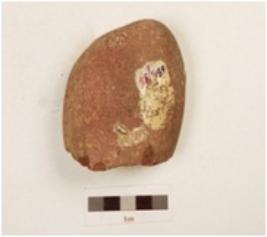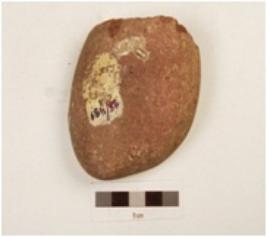 | Description / विवरण | A chopper made on quartzite pebble butt end, visible cortex, slightly chipped off working edge, oval section. |