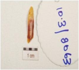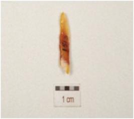 | Description / विवरण | A blade made on chert, grooves on the dorsal side and flake scars, smooth surface, sharp edges. |