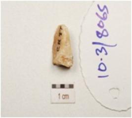 | Description / विवरण | A core made on chert prepared platform on posterior end, blade scars on every side. |