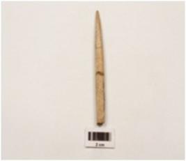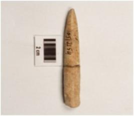 | Description / विवरण | Bone pointed with tapered end, one end pointed other end broken, circular in section, mended middle surface, polished. |