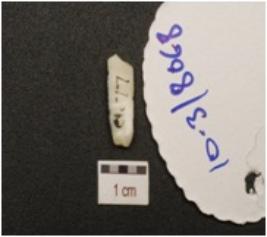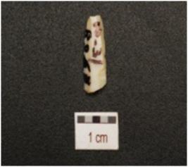 | Description / विवरण | Fragment of a chert blade bulb on ventral side, double ridge on dorcel side, use wear marks on working edges, trapezoidal in section. |