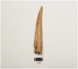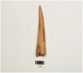 | Description / विवरण | Fragment of point on horn with modifide and well polished surface pointed towords one end, thicker and broken other end. |