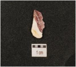 | Description / विवरण | A utilized flake made on chert, end struck flake, prepared striking platform on proximal end, prominent bulb on ventral surface, use ware marks on cutting edge, flake scars on dorsal surface, triangular in cross section. |