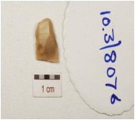 | Description / विवरण | A fragment of single sided blade made on chert, end struck flake, bulb absent, broken one end, sharp cutting edge, use ware marks on cutting edge, blade scars on one surface, trapezoidical in section. |