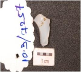 | Description / विवरण | A flake on chalcedony and three blade scars on one side. |