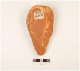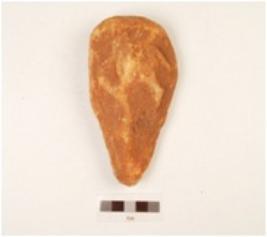 | Description / विवरण | A hand axe made on quartzite side struck flake, flake scars on surface, use wear edges, chipped off, made on cortex, plano convex in section. |