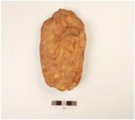 | Description / विवरण | A hand axe made on quartzite pebble, small flake scars on both sides, biconvex section. |