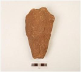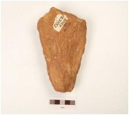 | Description / विवरण | A bifacial handaxe, made on quartzite pebble with flake scars on both side, cortex on dorsal, broken distal end and sharp working edge, triangular in section. |